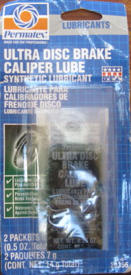 Remove the caliper from the plate to apply caliper lube. Push the caliper sleeves out of the caliper body and grease the outside of the sleeves and the inside of the o-rings. Also grease the outer o-rings and the smooth part of the caliper slide pins, but keep the grease off the threads. Reinstall the sleeves in the caliper body.