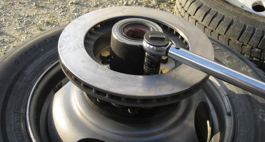 Thread the castle nut onto the spindle and tighten by hand while turning the hub. Keep turning while you torque the nut to 25-30 ft-lbs to seat the bearing onto the spindle.